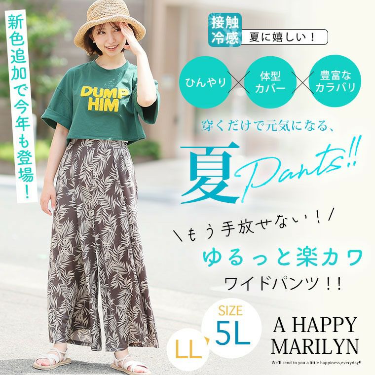 他の画像を見る ボトムス ワイドパンツ LL 3L 4L 5L 夏 夏物 夏服 ぽっちゃり ゆったり 接触冷感 イージーパンツ 新色追加!! とろみ感で肌触り抜群 選べる柄 ひやツル パンツ 【ウェストゴム】 【ストレッチ】 | 大きいサイズの通販ならハッピーマリリン 価格 ¥ 1,690 税込 4.34 お気に入りに登録する