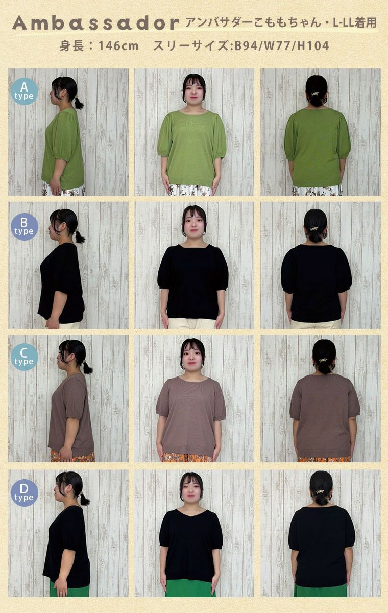 他の画像を見る サマーニット パフ UV LL 3L 4L 5L 6L 半袖 夏 夏物 夏服 夏用 ぽっちゃり ゆったり プラスサイズ かわいい おしゃれ 冷感 マリクールknit 4タイプから選べる トップス | 大きいサイズの通販ならハッピーマリリン 価格 ¥ 2,190 税込 4.13 お気に入りに登録する