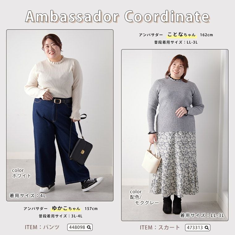 他の画像を見る セーター LL 3L 4L 5L 6L 長袖 秋 秋物 秋服 冬 冬物 冬服 ぽっちゃり ゆったり プラスサイズ ハイネック プチハイ 二の腕カバー Tシャツ感覚で使える 首元華やか フリルネック リブニット | 大きいサイズの通販ならハッピーマリリン 価格 ¥ 2,190 税込 4.00 お気に入りに登録する