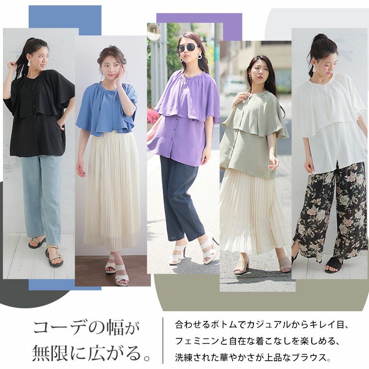 他の画像を見る シャツ トップス LL 3L 4L 夏 夏物 夏服 夏用 ぽっちゃり ゆったり かわいい カジュアル ナチュラル プラスサイズ 春 【effortless mode】華奢魅せ美人 さらり上品 シルキージョーゼット ダブルフリルブラウス | 大きいサイズの通販ならハッピーマリリン 在庫特価 定価 ¥ 3,990 のところ 価格 ¥ 2,000 税込 3.82 お気に入りに登録する