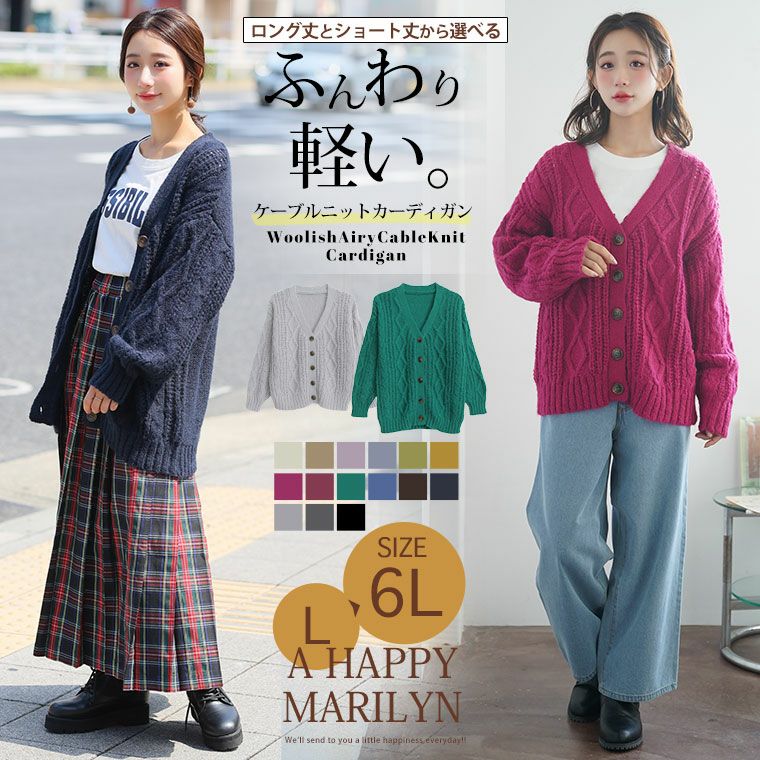 他の画像を見る オリジナル トップス カーデ LL 3L 4L 5L 6L 冬 お腹 胸周り 二の腕カバー お尻 腰周り 長袖 軽くて暖か 選べる身長別 エアリーケーブル ウーリッシュ ニットカーデ | 大きいサイズの通販ならハッピーマリリン 小柄さん丈有 在庫特価 定価 ¥ 3,790 のところ 価格 ¥ 3,000 税込 3.54 お気に入りに登録する
