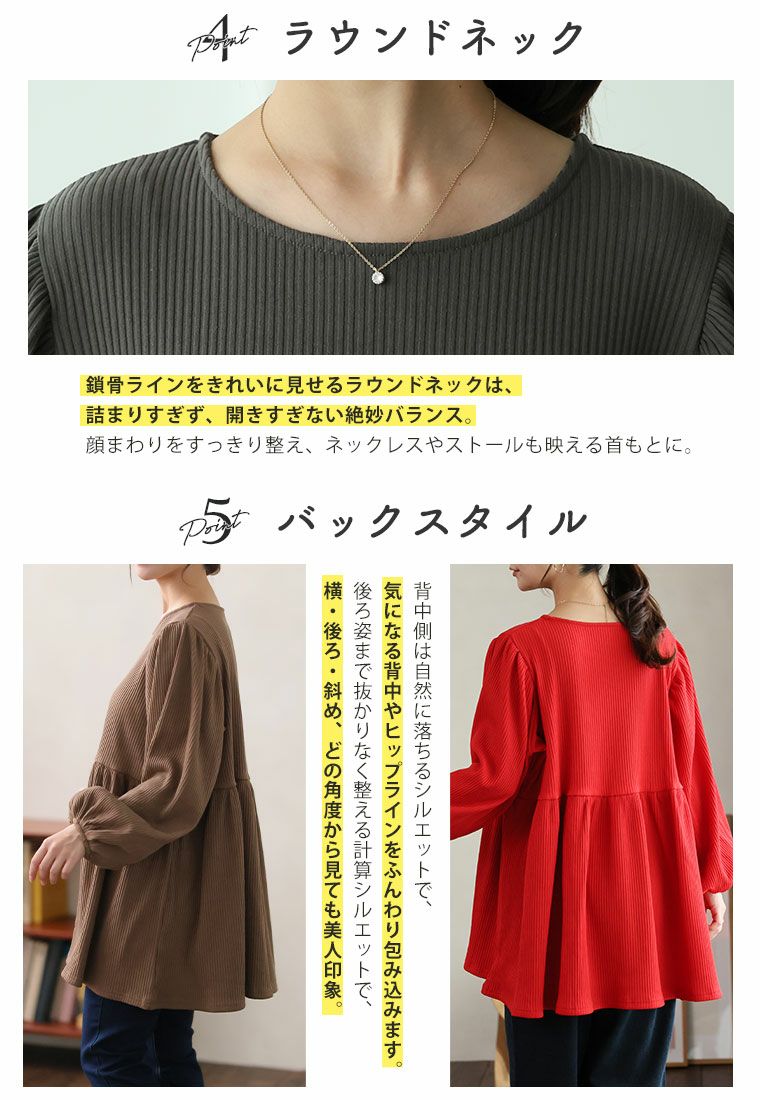 他の画像を見る LL 3L 4L 5L 6L 7L 8L 秋 秋物 秋服 冬 冬物 冬服 ぽっちゃり ゆったり プラスサイズ 裏起毛 起毛 あったか お尻 【ちょい温シリーズ】 美人に体型カバー ラウンドネック リブ チュニック | 大きいサイズの通販ならハッピーマリリン 価格 ¥ 2,990 税込 3.88 お気に入りに登録する