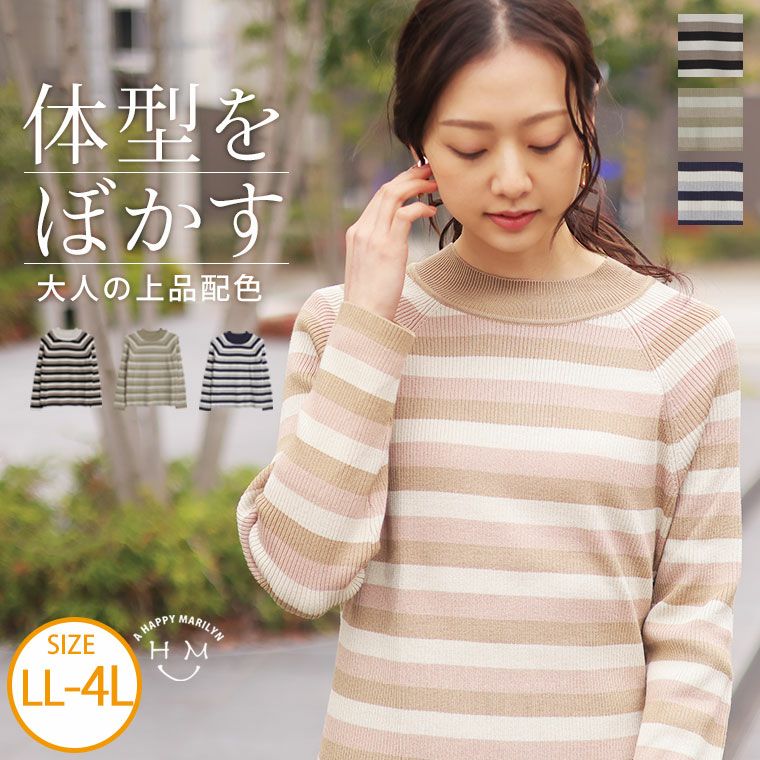 他の画像を見る セーター LL 3L 4L 冬 冬物 冬服 ぽっちゃり ゆったり カジュアル ナチュラル プラスサイズ インナー ボーダーニット プチハイ おしゃれに体型ぼかし トライボーダー ラグラン ニットプルオーバー | 大きいサイズの通販ならハッピーマリリン 価格 ¥ 4,290 税込 3.00 お気に入りに登録する