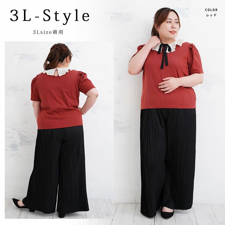 他の画像を見る カットソー プルオーバー LL 3L 4L 秋 秋物 秋冬 ぽっちゃり ゆったり プリーツ加工 キレイめ 上品 高見え かわいい おしゃれ カジュアル ナチュラル プラスサイズ 配色 シフォンプリーツ襟 テレコリブトップス | 大きいサイズの通販ならハッピーマリリン 価格 ¥ 3,490 税込 4.25 お気に入りに登録する