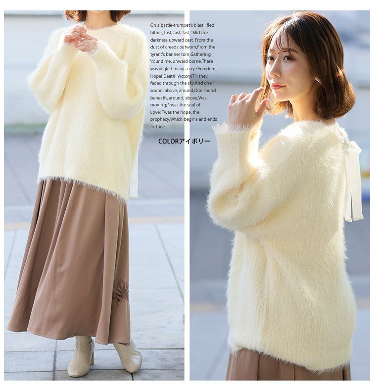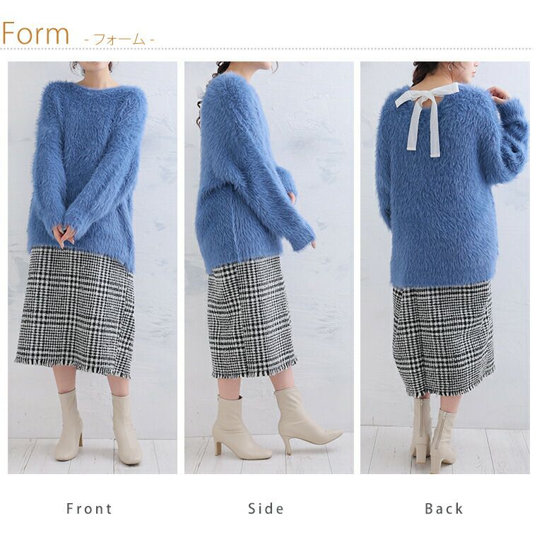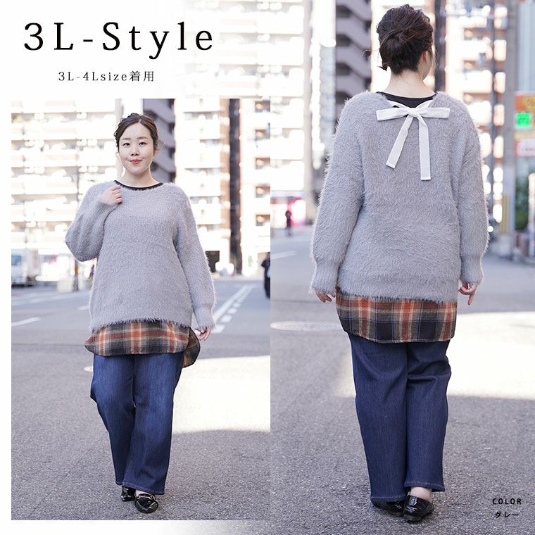 他の画像を見る オリジナル ニット セーター LL 3L 4L 5L 6L 冬 冬物 冬服 ぽっちゃり ゆったり あったか フェミニン ガーリー カジュアル プラスサイズ ほの甘 バックリボン シャギー ふわふわニット | 大きいサイズの通販ならハッピーマリリン 価格 ¥ 3,990 税込 3.81 お気に入りに登録する