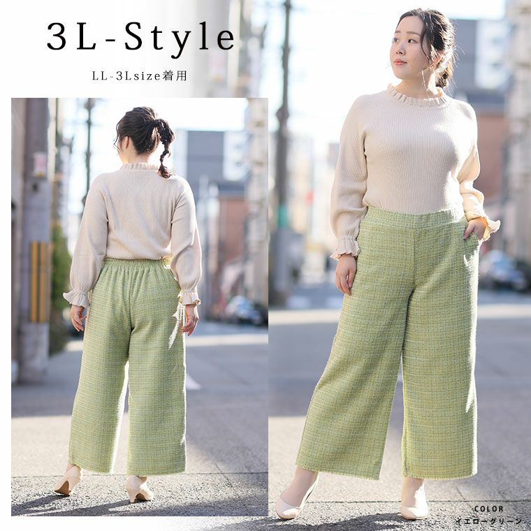 他の画像を見る ボトムス LL 3L 4L 5L 春 ぽっちゃり ゆったり リン 上品 プラスサイズ Rin 上品に華やぐ ファンシーツイード パンツ オフィス 大人 着やせ 体型カバー ビジネス 通勤 ママ セレモニー 【セレモニー】 | 大きいサイズの通販ならハッピーマリリン 価格 ¥ 3,990 税込 3.00 お気に入りに登録する
