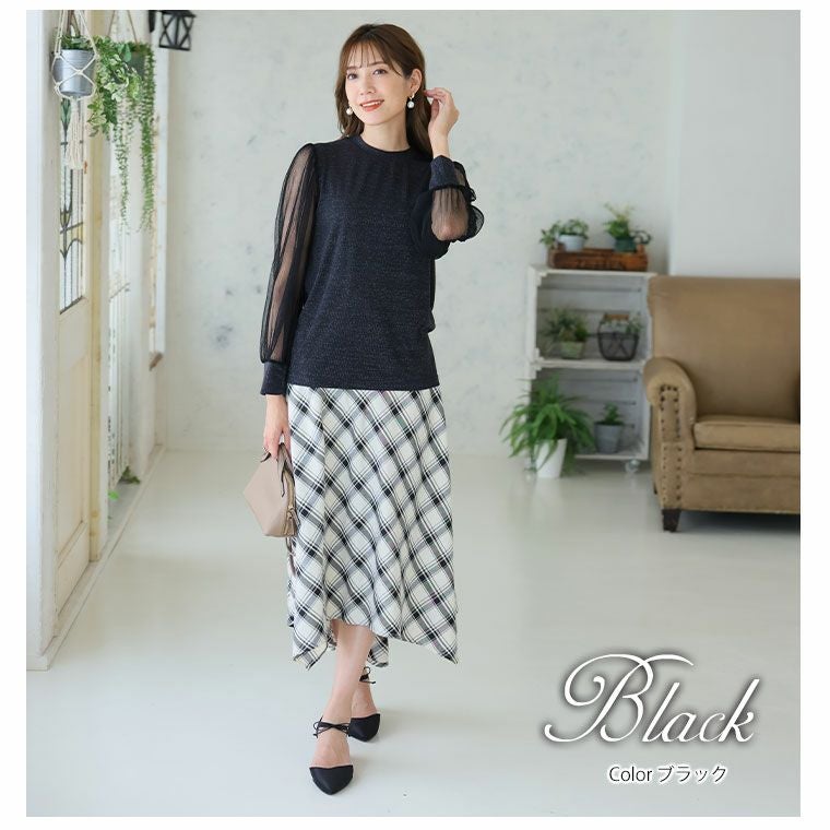 他の画像を見る トップス LL 3L 4L オフィス 大人 着やせ 体型カバー ビジネス 通勤 ママ 秋 秋物 秋服 冬 冬物 冬服 ぽっちゃり ゆったり プラスサイズ かわいい Rin 大人の上品華やぎ ラメリブ袖 チュール切替トップス | 大きいサイズの通販ならハッピーマリリン 価格 ¥ 3,490 税込 2.00 お気に入りに登録する