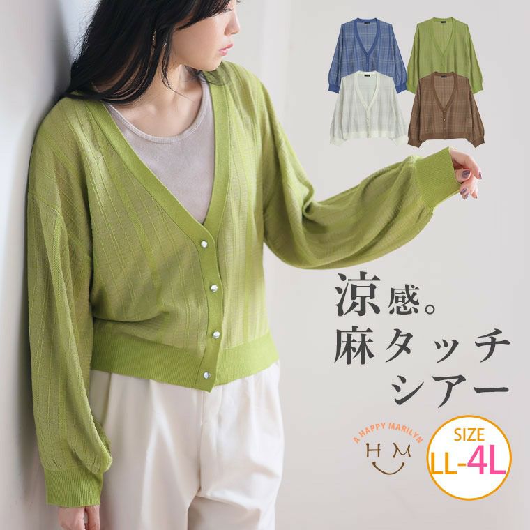 他の画像を見る トップス カーデ 羽織り LL 3L 4L 夏 夏物 夏服 夏用 ぽっちゃり ゆったり かわいい おしゃれ カジュアル ナチュラル プラスサイズ サマーニット 春 麻タッチ 12G シアー チェック ニットカーディガン リネン | 大きいサイズの通販ならハッピーマリリン SALE 定価 ¥ 3,990 のところ 価格 ¥ 3,390 税込 4.50 お気に入りに登録する
