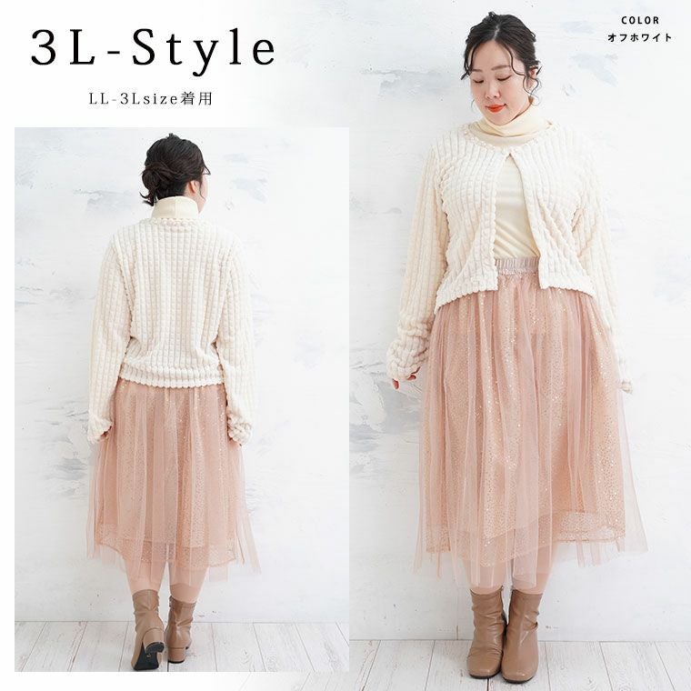 他の画像を見る カーデ 羽織り LL 3L 4L 冬 冬物 冬服 ぽっちゃり パールアイテム 軽量 フェミニン ふわふわ 短丈 ゆったり かわいい おしゃれ カジュアル ナチュラル プラスサイズ 春 型押し フェイクファー ボレロ | 大きいサイズの通販ならハッピーマリリン 価格 ¥ 3,790 税込 4.00 お気に入りに登録する
