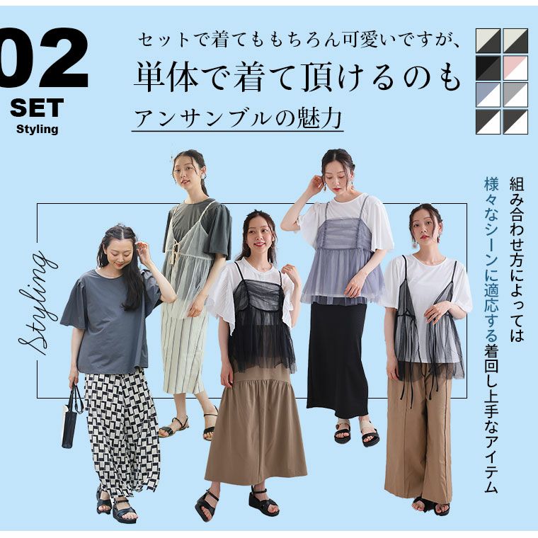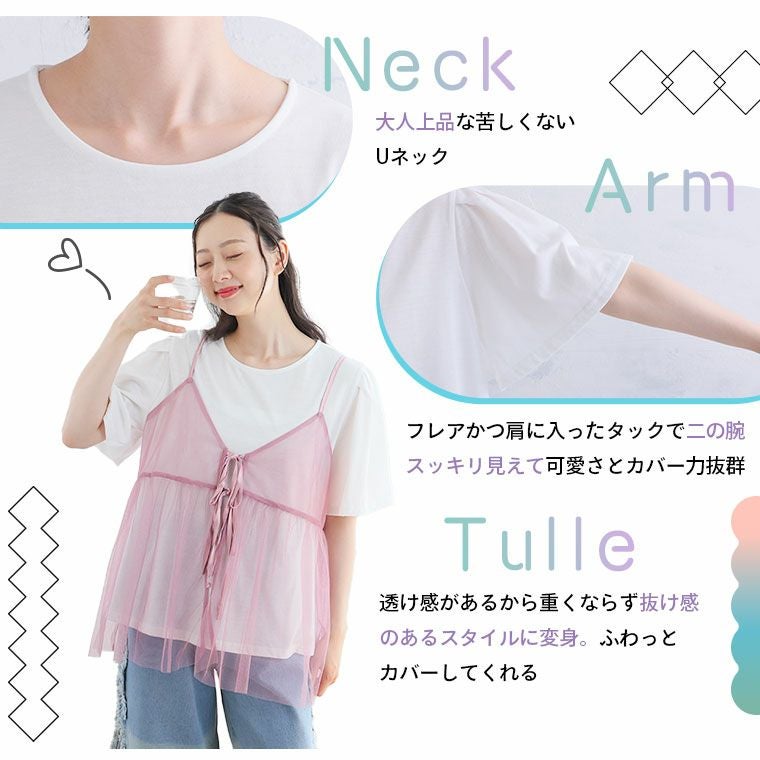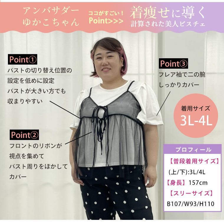 他の画像を見る オリジナル コーデセット 2点セット LL 3L 4L 5L 6L 夏 夏物 夏服 夏用 ぽっちゃり ゆったり かわいい プラスサイズ 2タイプから選べる! トレンドチュールで着痩せが叶う ビスチェ アンサンブル | 大きいサイズの通販ならハッピーマリリン 価格 ¥ 3,690 税込 4.00 お気に入りに登録する