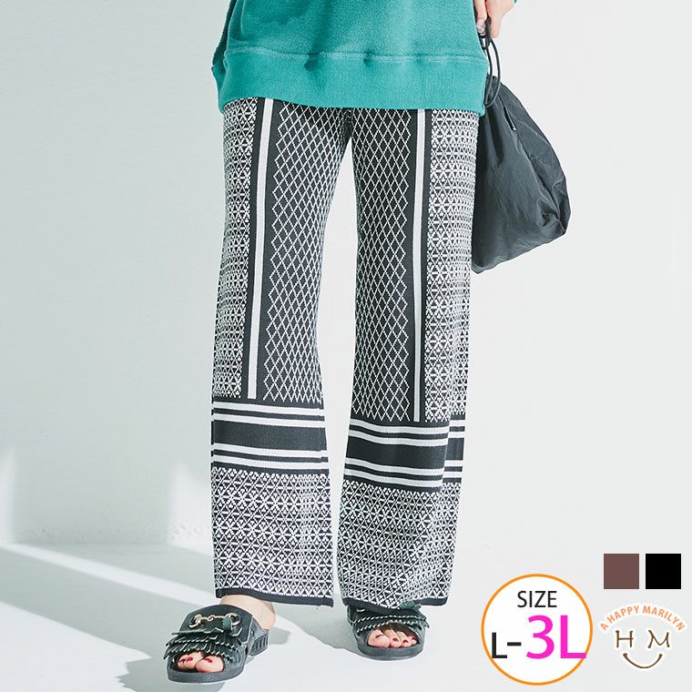 他の画像を見る カラーパンツ ボトムス LL 3L 秋 秋物 秋冬 ぽっちゃり ゆったり おしゃれ カジュアル プラスサイズ ラビアンジェ きれいめ 上品 【ウェストゴム】 【LAVEANGE】ジャガード ニット パンツ | 大きいサイズの通販ならハッピーマリリン 送料無料 価格 ¥ 5,940 税込 お気に入りに登録する