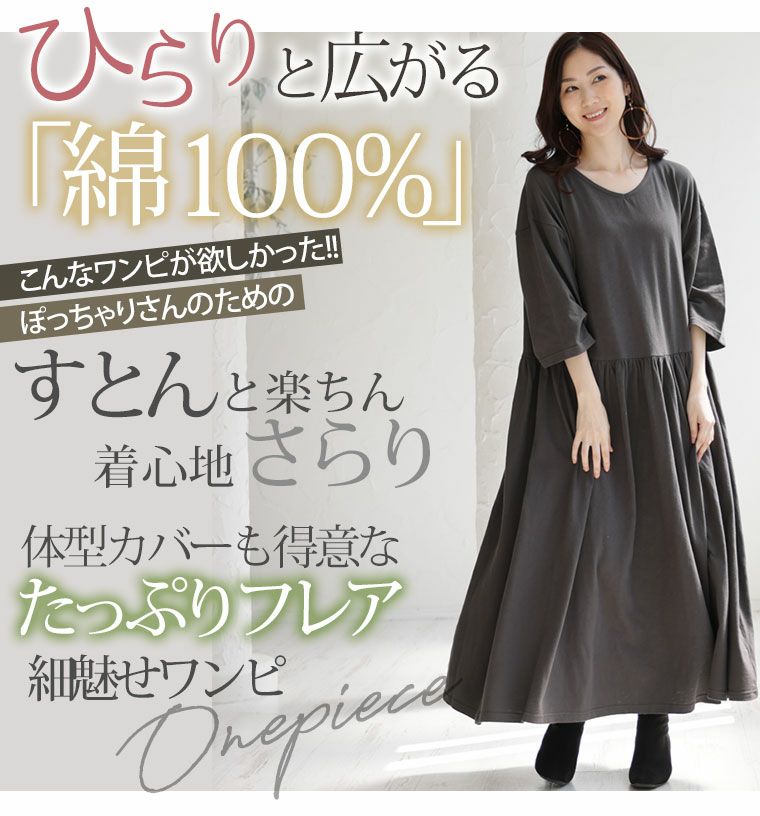 他の画像を見る オリジナル ワンピース ワンピ デザインワンピ LL 3L 4L 5L 6L 秋 秋物 秋冬 ぽっちゃり ゆったり お腹 太もも 低身長 高身長 さらりと綿100% 身長別に選べる2丈 大人の七難神隠し コットン切替フレアワンピ | 大きいサイズの通販ならハッピーマリリン 小柄さん丈有 価格 ¥ 5,990 税込 3.00 お気に入りに登録する