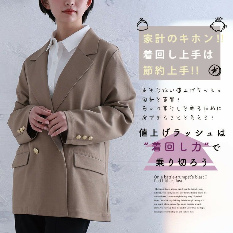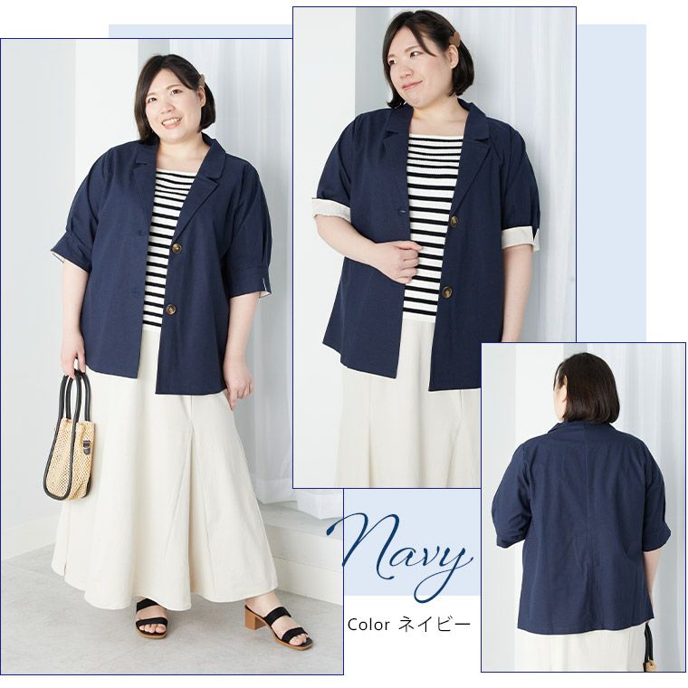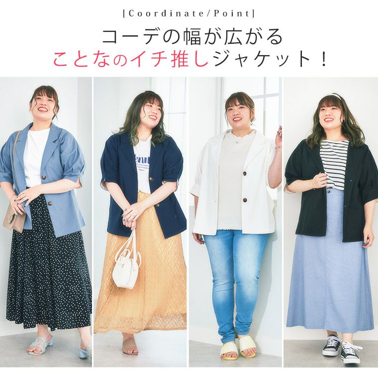 他の画像を見る オリジナル ジャケット LL 3L 4L 5L 6L 春 春物 春服 夏 夏物 夏服 ゆったり 胸周り 二の腕カバー Rin すっきり着られてゆったりお洒落 着心地美人な ストレッチ ダブルボタン ハンサム テーラードジャケット | 大きいサイズの通販ならハッピーマリリン 価格 ¥ 5,990 税込 4.63 お気に入りに登録する