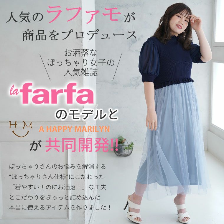 他の画像を見る オリジナル ワンピ デザインワンピ LL 3L 4L 5L 6L 夏 夏物 夏服 ぽっちゃり lafarfa ラファーファ コラボ プラスサイズ 【ラファモプロデュース】 シフォン袖ドッキングニットチュールスカート ワンピース (小川みこ) | 大きいサイズの通販ならハッピーマリリン 価格 ¥ 5,990 税込 3.64 お気に入りに登録する