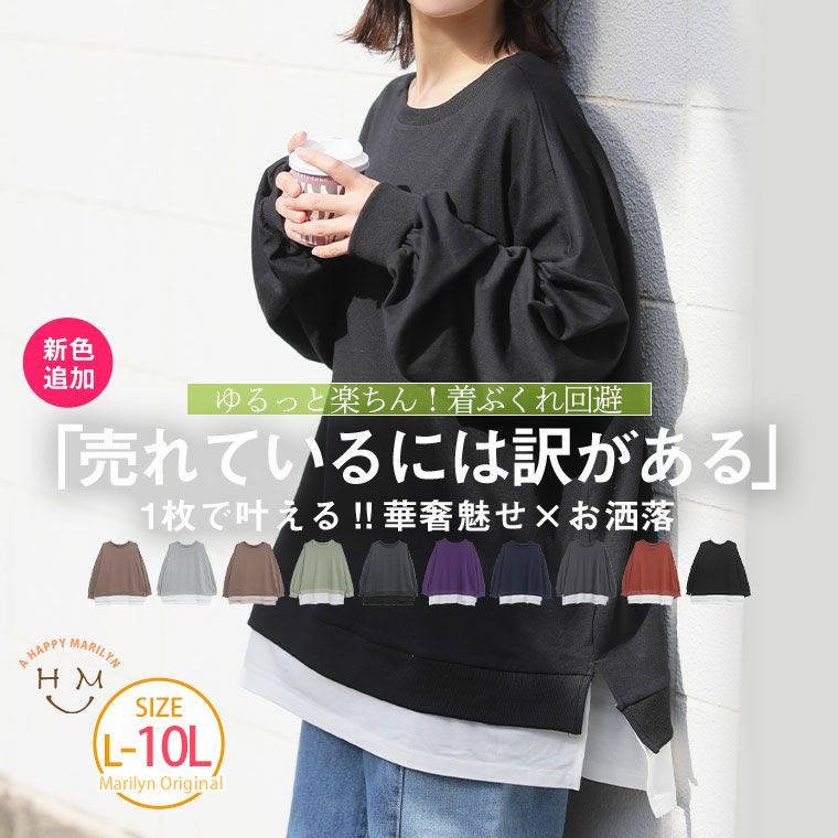 他の画像を見る オリジナル LL 3L 4L 5L 6L 7L 8L 9L 10L 秋 秋物 秋冬 ぽっちゃり ゆったり お腹 胸周り 腰周り かわいい おしゃれ 新色追加!! ゆるっと楽ちん!着ぶくれ回避の 重ね着風 ミニ裏毛 プルオーバー | 大きいサイズの通販ならハッピーマリリン HIT100 価格 ¥ 2,690 税込 4.40 お気に入りに登録する