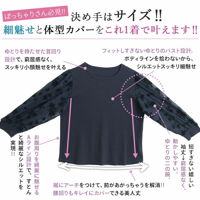 他の画像を見る オリジナル カットソー プルオーバー LL 3L 4L 5L 6L 夏 夏物 夏服 夏用 ぽっちゃり ゆったり カジュアル ナチュラル プラスサイズ 胸周り 二の腕カバー キレイめ 春 花モチーフ レース袖 サカリバ素材 トップス | 大きいサイズの通販ならハッピーマリリン SALE 定価 ¥ 2,790 のところ 価格 ¥ 557 税込 4.00 お気に入りに登録する