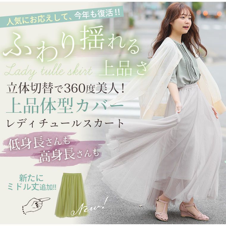 他の画像を見る オリジナル ボトムス LL 3L 4L 5L 6L 7L 8L 春 お腹 太もも お尻 腰周り 新丈追加!! 立体切替で360度美人!上品体型カバー レディ チュール レース ロングスカート | 大きいサイズの通販ならハッピーマリリン 小柄さん丈有 在庫特価 定価 ¥ 2,690 のところ 価格 ¥ 2,000 税込 4.15 お気に入りに登録する
