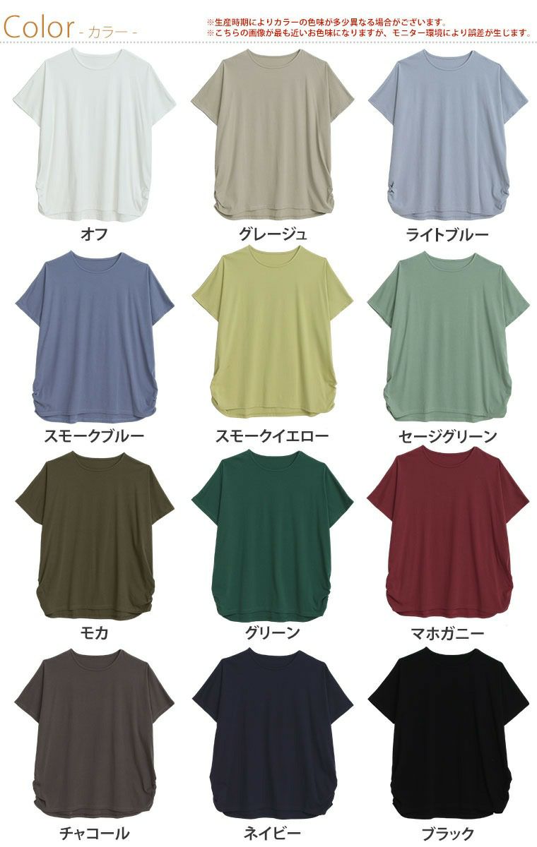 他の画像を見る カットソー プルオーバー 3L 4L 5L 6L 半袖 夏 夏物 夏服 夏用 ぽっちゃり ゆったり コットン 接触冷感 かわいい お腹 体型別対応 肌触り心地良い 綿フライス サイドギャザー ドルマン トップス | 大きいサイズの通販ならハッピーマリリン 価格 ¥ 2,790 税込 お気に入りに登録する