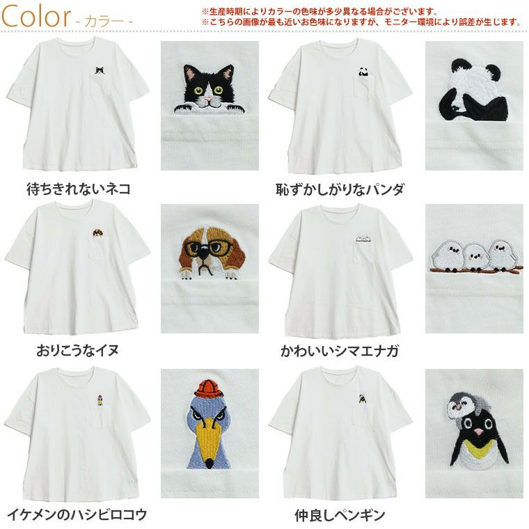 他の画像を見る カットソー LL 3L 4L 5L 6L 7L 8L 9L 10L 半袖 五分袖 夏 夏物 夏服 夏用 ぽっちゃり ゆったり プラスサイズ かわいい カジュアル さらっと 綿100% ひょっこりアニマル刺繍 コットン ゆるTシャツ | 大きいサイズの通販ならハッピーマリリン 価格 ¥ 2,190 税込 4.86 お気に入りに登録する