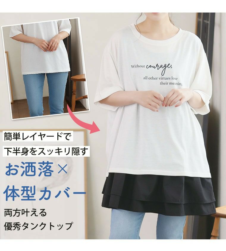 他の画像を見る トップス LL 3L 4L 5L 6L 8L 10L ノースリーブ 夏 夏物 夏服 夏用 ぽっちゃり ゆったり プラスサイズ フリル 可愛い 見せ裾 お尻 お腹 可愛くお尻を隠しちゃえ♪ 2段フリル 裾見せ タンクトップ | 大きいサイズの通販ならハッピーマリリン 価格 ¥ 2,190 税込 3.83 お気に入りに登録する