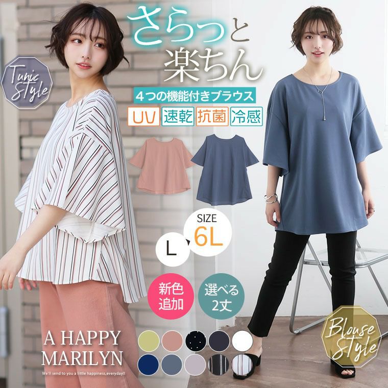 他の画像を見る ブラウス シャツ チュニック LL 3L 4L 5L 6L 夏 夏物 夏服 夏用 ぽっちゃり ゆったり 接触冷感 吸水速乾 UV 抗菌防臭 二の腕カバー お腹 お尻 新色追加!! 選べる丈 チラ見え防止 半袖 フレアー トップス | 大きいサイズの通販ならハッピーマリリン HIT100 小柄さん丈有 価格 ¥ 2,690 税込 4.27 お気に入りに登録する