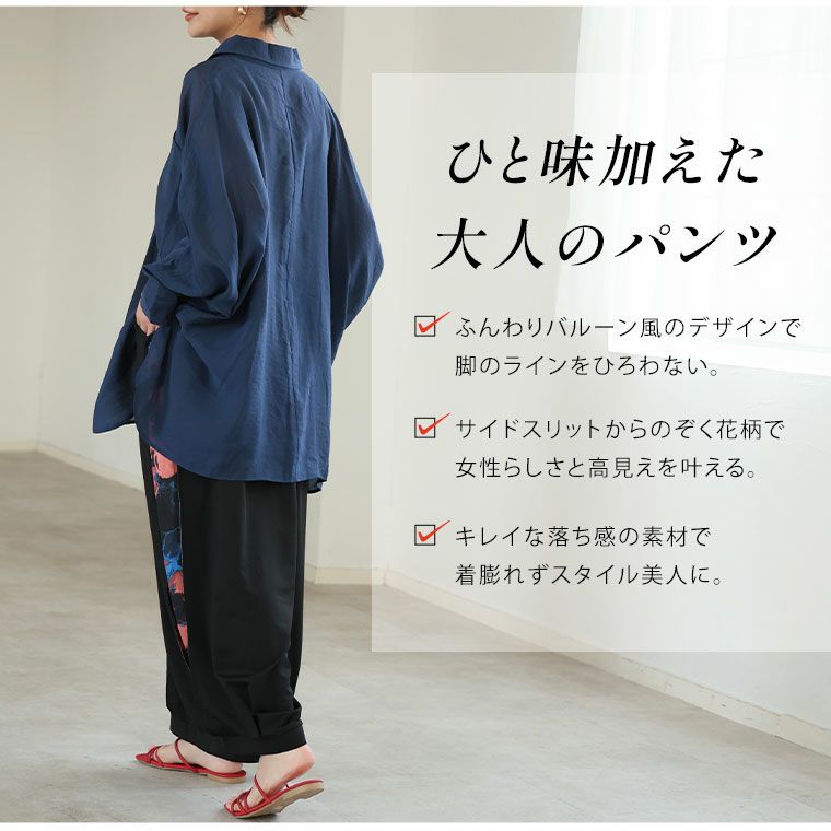 他の画像を見る ボトムス 派手パンツ イージーパンツ 柄物 LL 3L 4L 5L 6L 春 春物 春服 夏 夏物 夏服 ぽっちゃり ゆったり プラスサイズ カジュアル 【新作◆3月13日販売】 2丈から選べる サイドスリット 上品柄 ランタンパンツ 【ウェストゴム】 【ストレッチ】 | 大きいサイズの通販ならハッピーマリリン NEW HIT100 価格 ¥ 3,790 税込 4.50 お気に入りに登録する