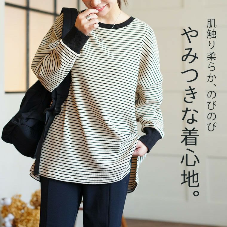 他の画像を見る カットソー LL 3L 4L 5L 6L 7L 8L 長袖 秋 秋物 秋服 冬 冬物 冬服 ゆったり 胸回り 【ちょい温シリーズ】 ラウンドネック リブ トップス クルーネック Uネック あったか 起毛 裏起毛 ボーダー | 大きいサイズの通販ならハッピーマリリン 価格 ¥ 2,490 税込 4.33 お気に入りに登録する