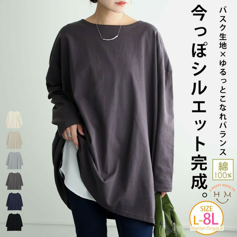 他の画像を見る カットソー LL 3L 4L 5L 6L 7L 8L 長袖 秋 秋物 秋服 冬 冬物 冬服 ぽっちゃり ゆったり プラスサイズ チュニック ロンT 腰周り お腹 お尻 360度完璧 おでかけコクーン 綿100% バスクTシャツ | 大きいサイズの通販ならハッピーマリリン HIT100 価格 ¥ 2,990 税込 3.67 お気に入りに登録する