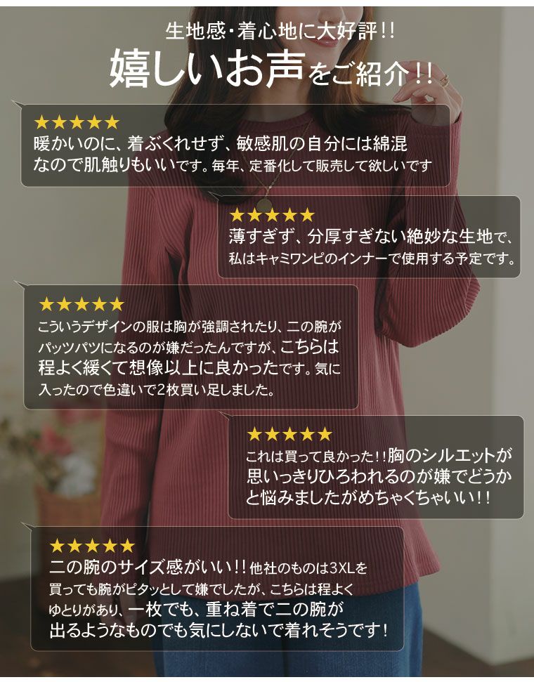 他の画像を見る インナー トップス カットソー LL 3L 4L 5L 6L 7L 8L 秋 秋物 秋冬 ぽっちゃり あったかインナー 可愛い 八分袖 十分袖 ★新色・袖丈追加 リッチタッチ 裏起毛 クルーネック 選べる袖 プルオーバー | 大きいサイズの通販ならハッピーマリリン HIT100 価格 ¥ 1,490 税込 4.49 お気に入りに登録する