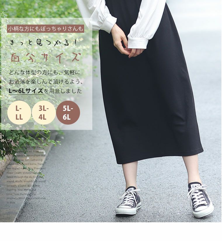 他の画像を見る オリジナル ボトムス タイトスカート LL 3L 4L 5L 6L 秋 秋物 秋冬 ぽっちゃり ゆったり お腹 太もも お尻 腰周り ロング丈 カジュアル ナチュラル プラスサイズ 春 大人カジュアル リブシリーズ ナロースカート | 大きいサイズの通販ならハッピーマリリン lafarfa掲載 在庫特価 定価 ¥ 2,190 のところ 価格 ¥ 1,500 税込 3.50 お気に入りに登録する