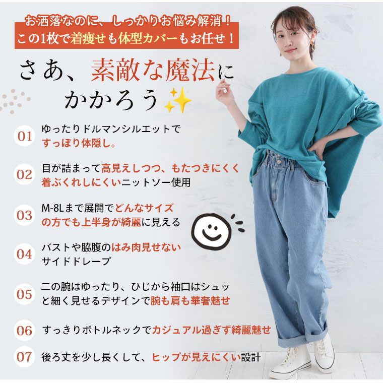 他の画像を見る オリジナル カットソー プルオーバー LL 3L 4L 5L 6L 7L 8L 冬 お腹 腰周り 二の腕カバー 腰周り 長袖 上半身のお悩みさようなら♪ 魔法にかかる ドルマントップス ニットソーバージョン | 大きいサイズの通販ならハッピーマリリン 在庫特価 定価 ¥ 1,980 のところ 価格 ¥ 1,500 税込 4.39 お気に入りに登録する