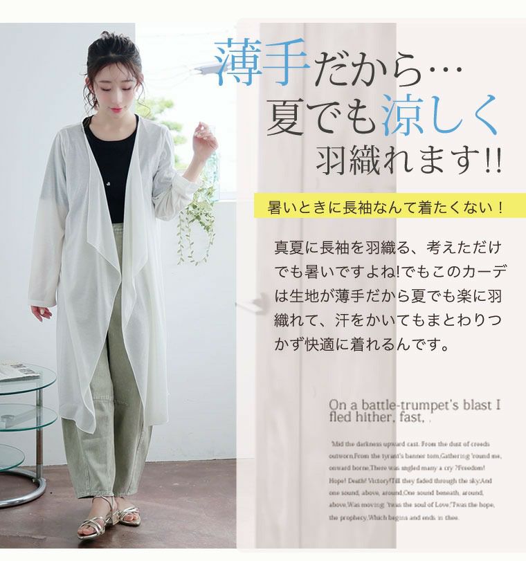 他の画像を見る オリジナル アウター LL 3L 4L 5L 二の腕カバー お腹 お尻 新色追加! 長袖 ・ 七分袖 ・ 半袖 シンプル カーディガン | 大きいサイズの通販ならハッピーマリリン 価格 ¥ 2,290 税込 4.20 お気に入りに登録する