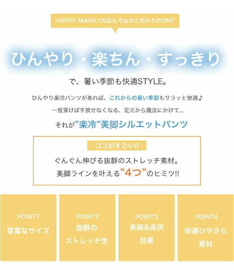 他の画像を見る ボトムス スキニー ズボン M L LL 3L 4L 5L 6L 7L 8L 大きいサイズ 春 夏 秋 冬 太もも ハッピーマリリン 楽冷 ひんやり 接触冷感 COOL クール ウエストゴム 楽ちん ストレッチ 美脚 レギパン 【ストレッチ】 | 大きいサイズの通販ならハッピーマリリン 安心価格 価格 ¥ 2,190 税込 4.07 お気に入りに登録する