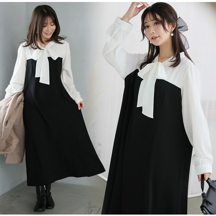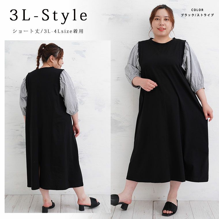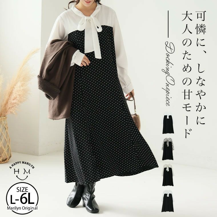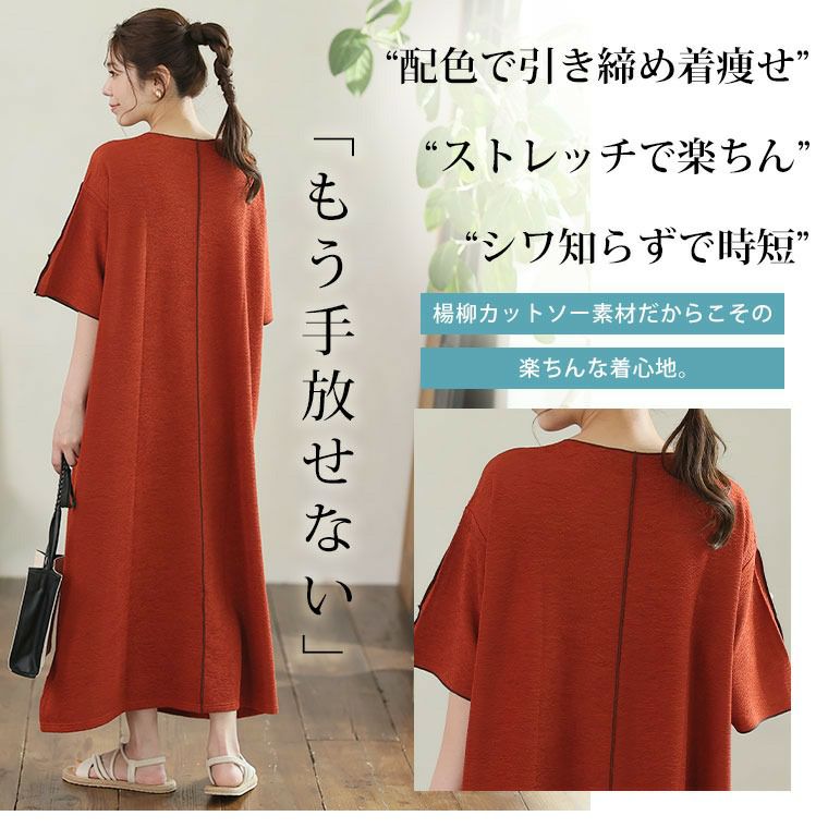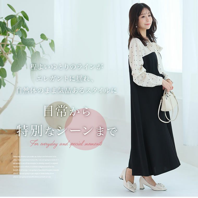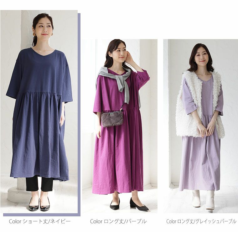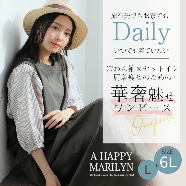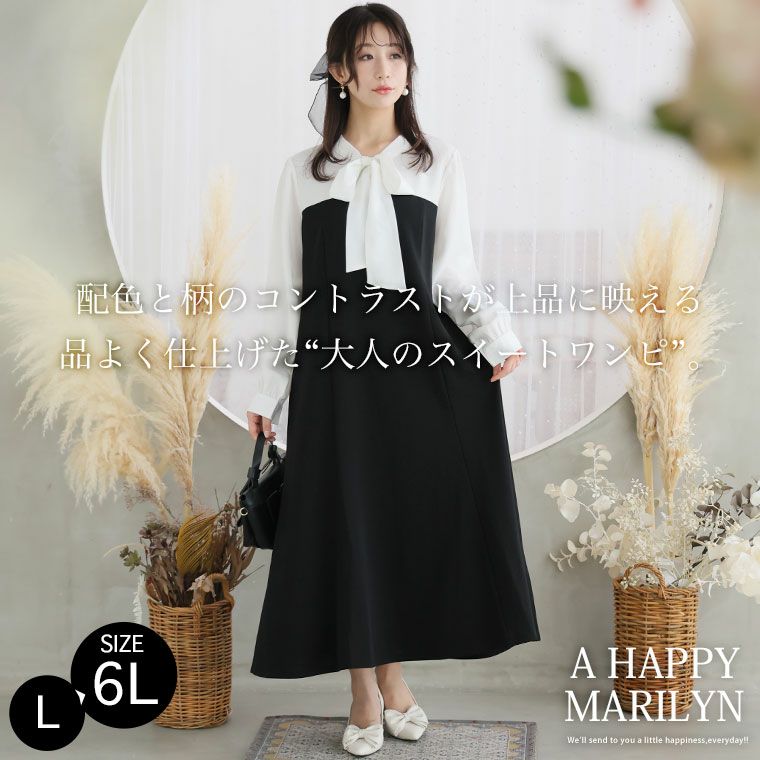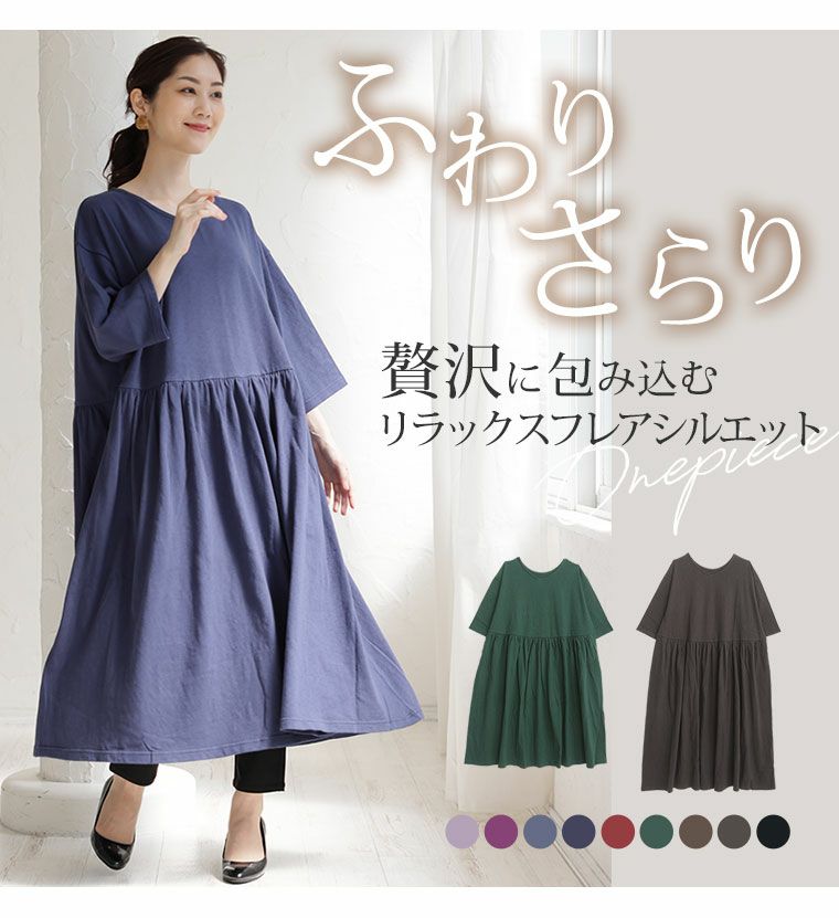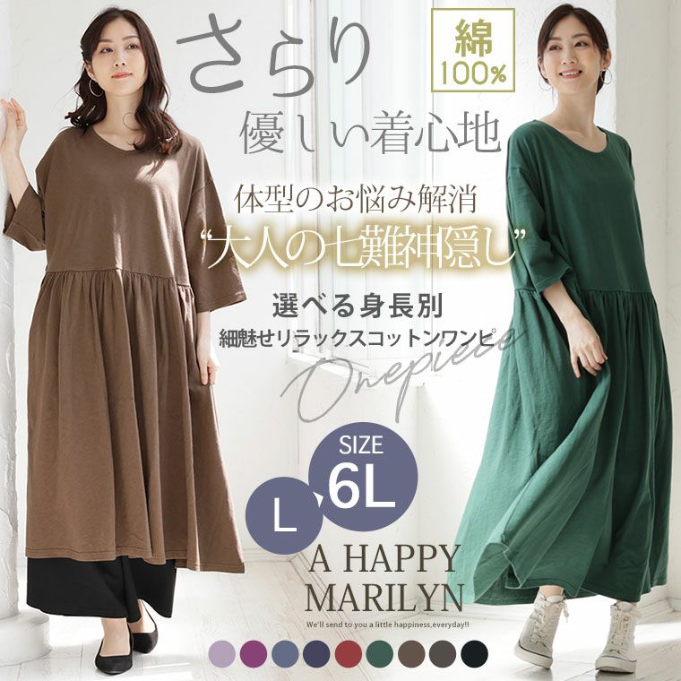 オリジナル ワンピース ワンピ デザインワンピ LL 3L 4L 5L 6L 秋 秋物 秋冬 ぽっちゃり ゆったり お腹 太もも 低身長 高身長 春 さらりと綿100% 身長別に選べる2丈 大人の七難神隠し コットン切替フレアワンピ | 大きいサイズの通販ならハッピーマリリン