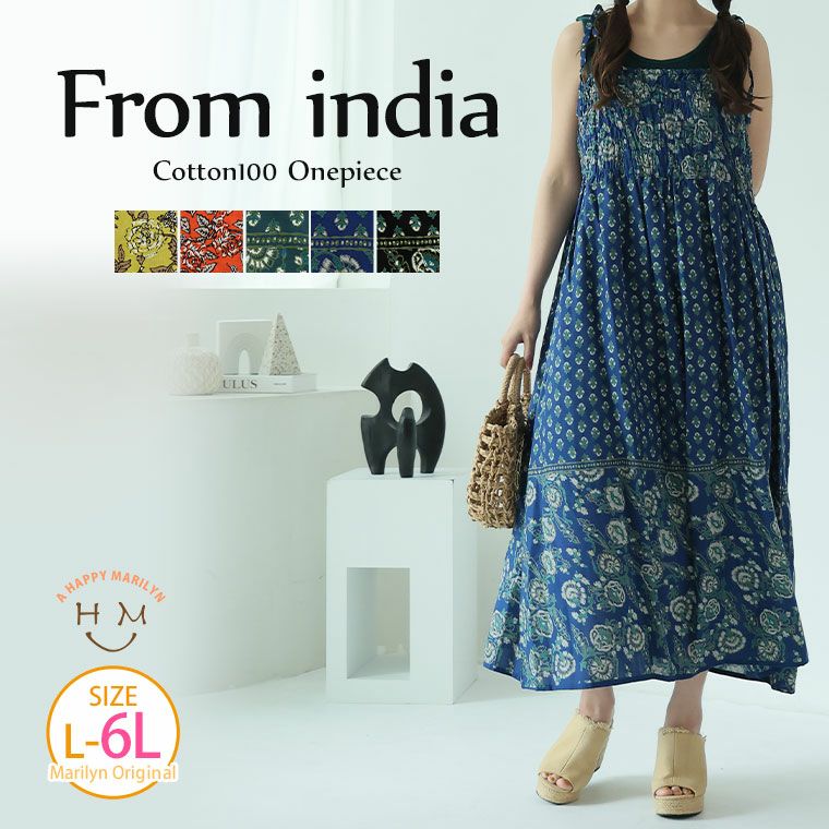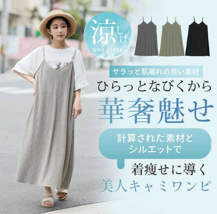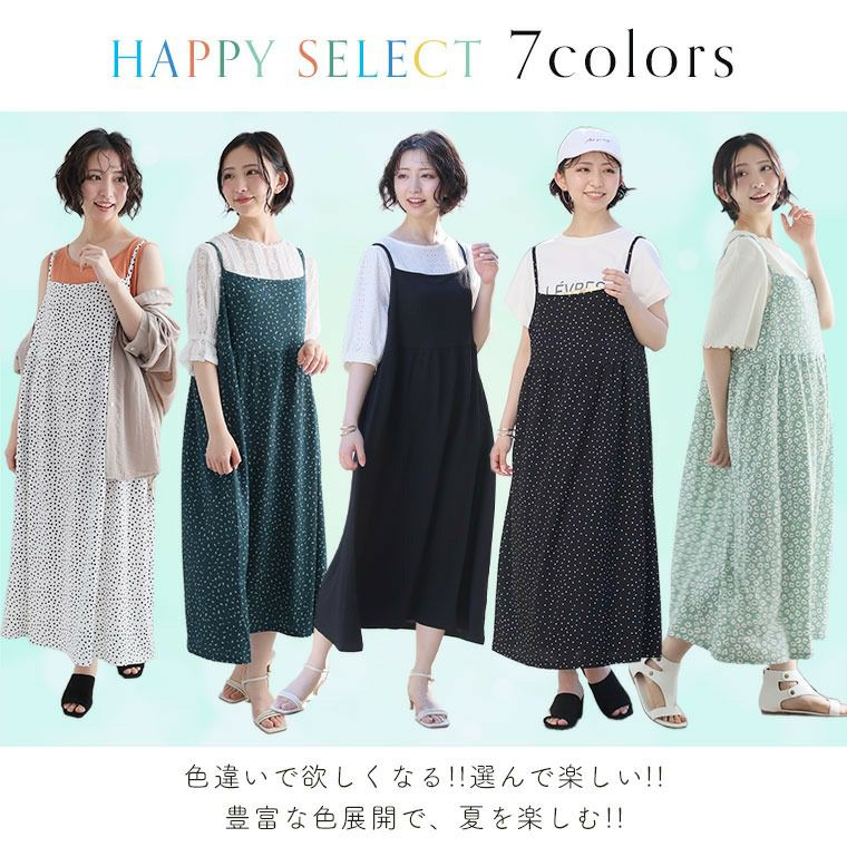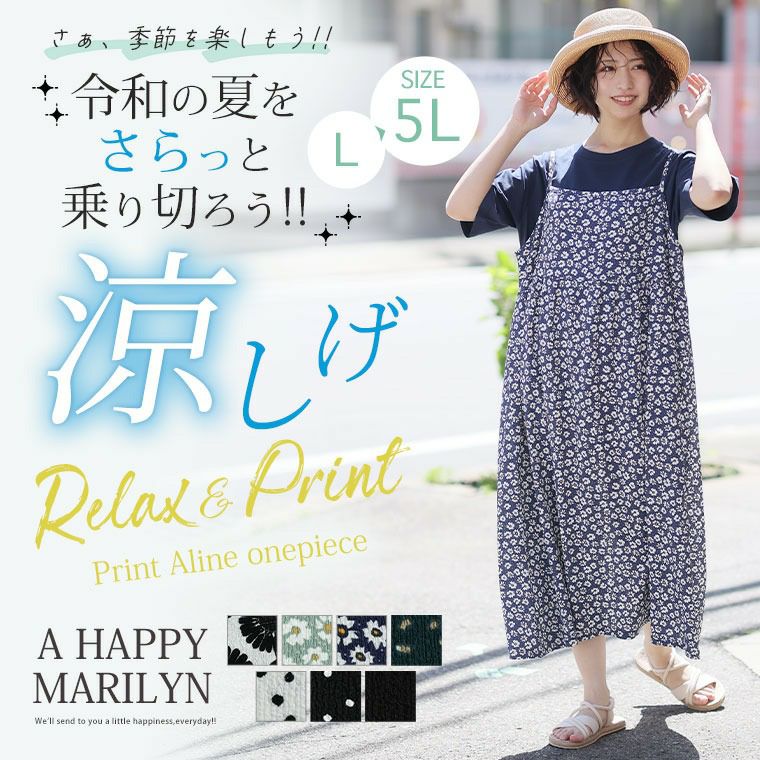 ワンピ デザインワンピ LL 3L 4L 5L ノースリーブ 夏 夏物 夏服 夏用 ぽっちゃり ゆったり プラスサイズ かわいい おしゃれ カジュアル ナチュラル 接触冷感 お腹 さらっと着られる!! 豊富な柄から選べる キャミソール ワンピース | 大きいサイズの通販ならハッピーマリリン