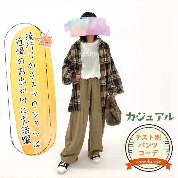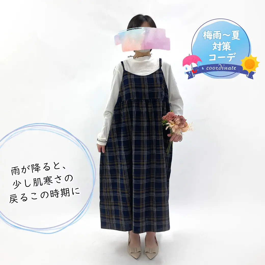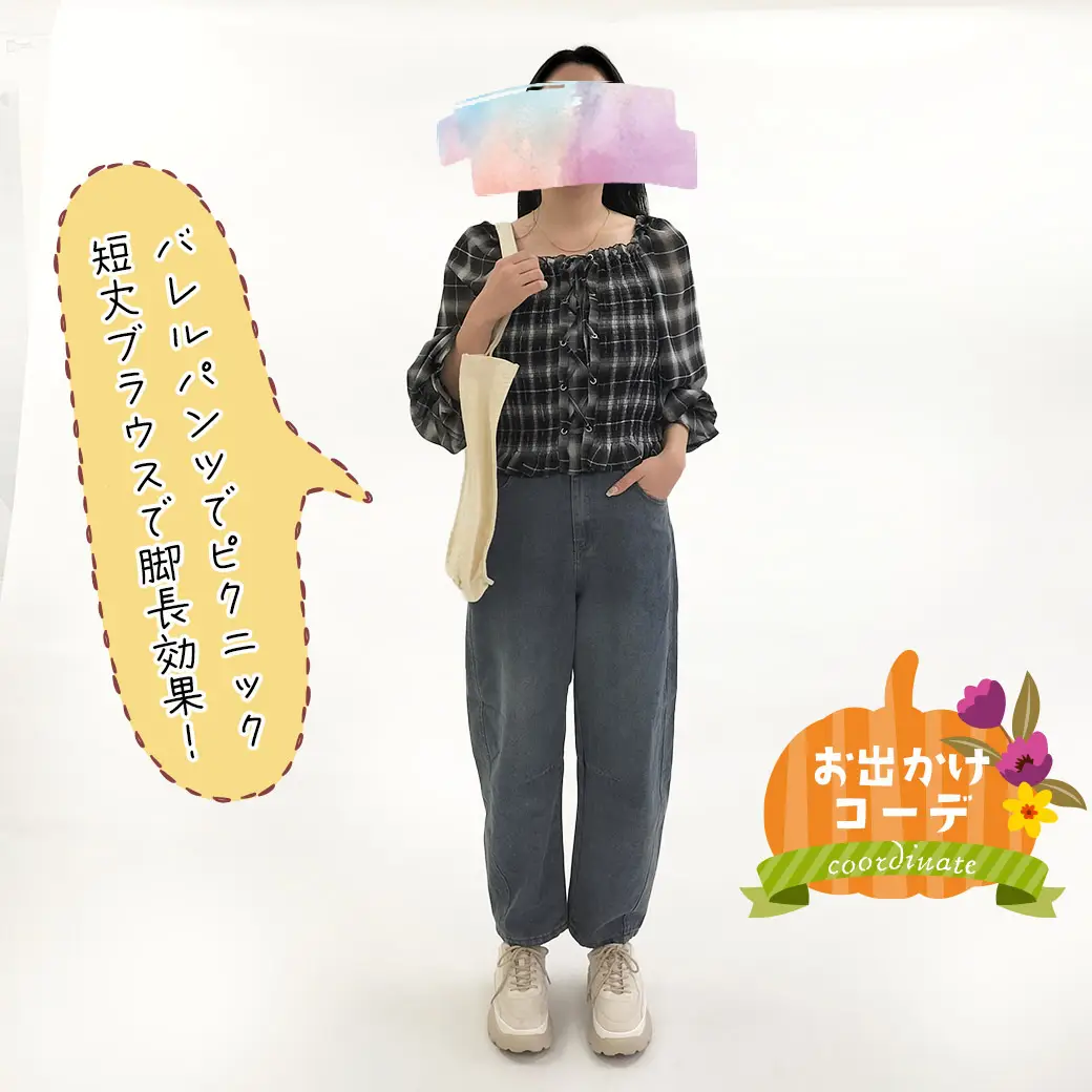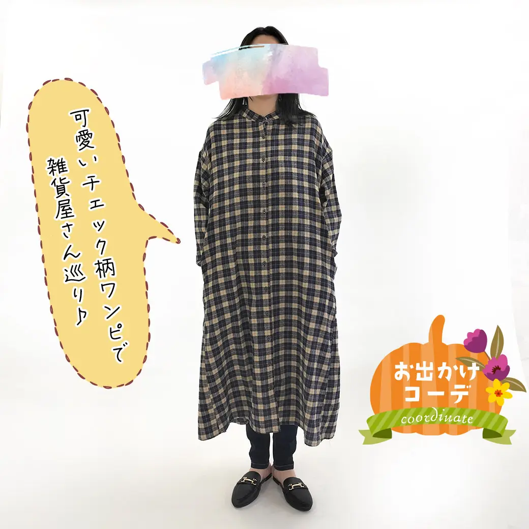 可愛いチェック柄のナチュラルコーデで雑貨屋さん巡りへ。2丈選べるので大柄さんも小柄さんもOK!