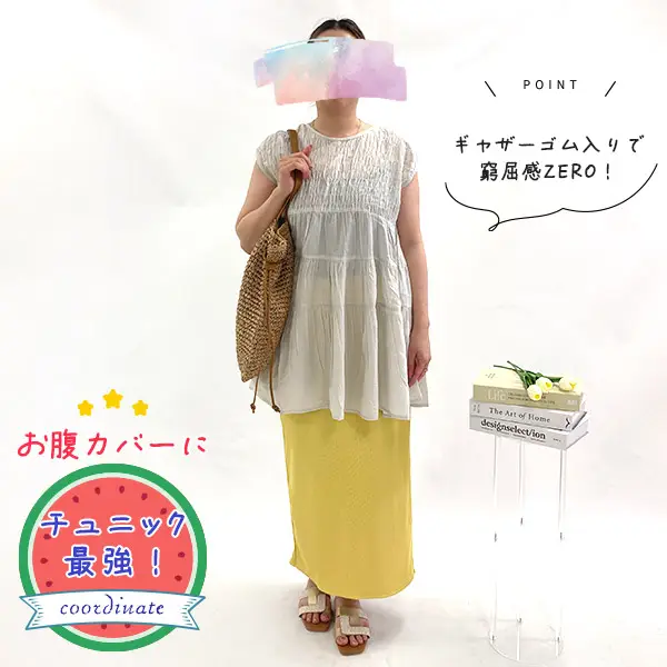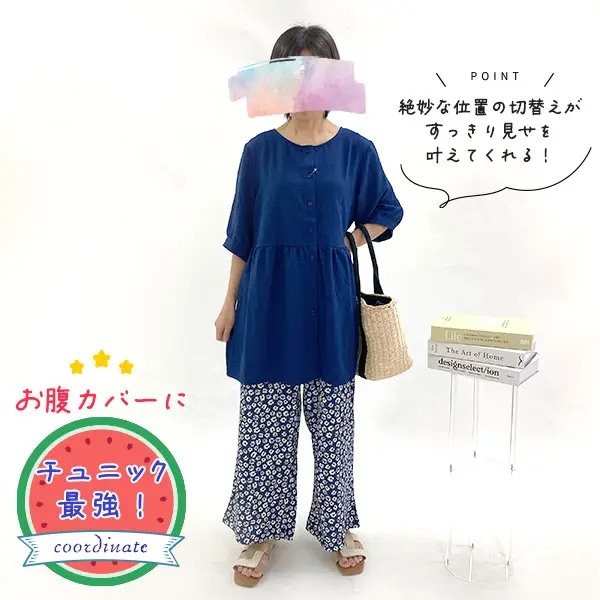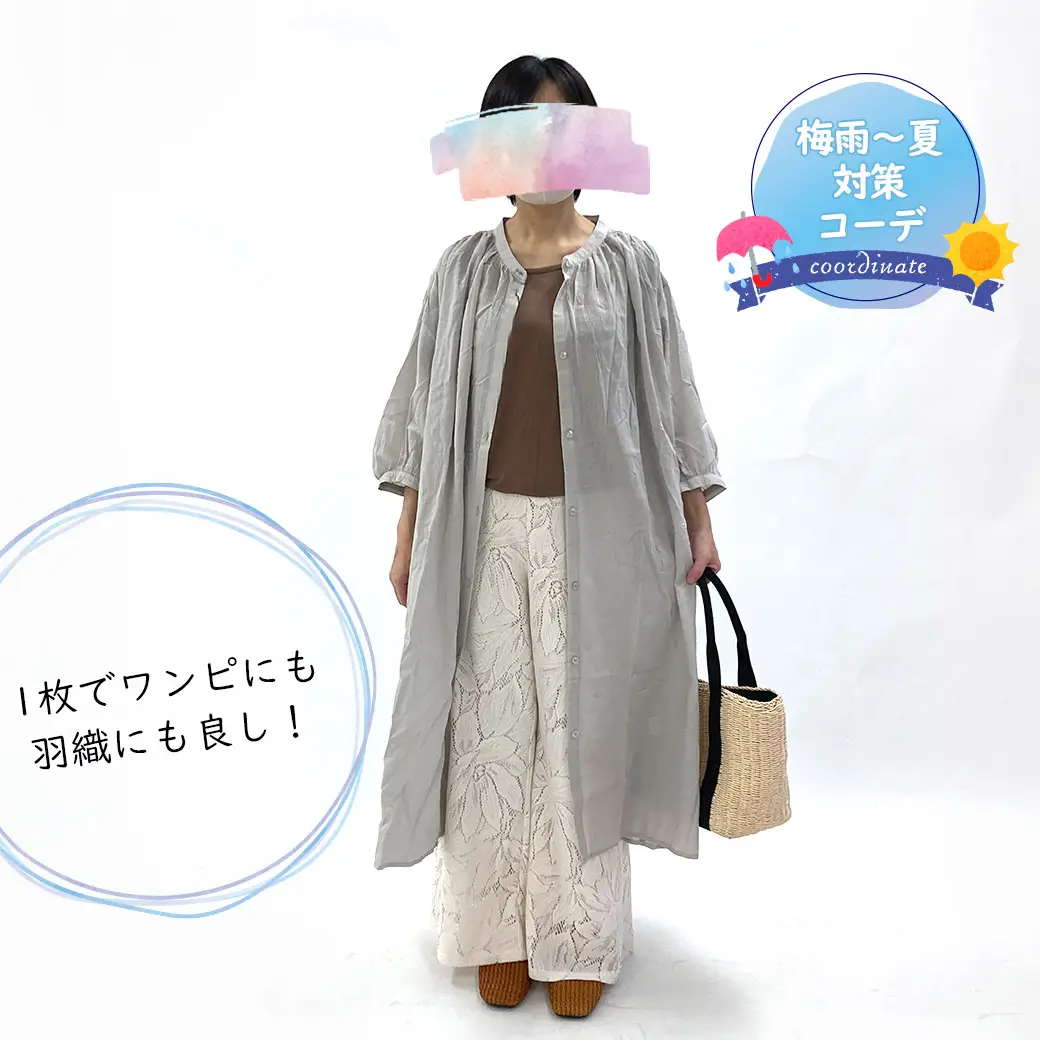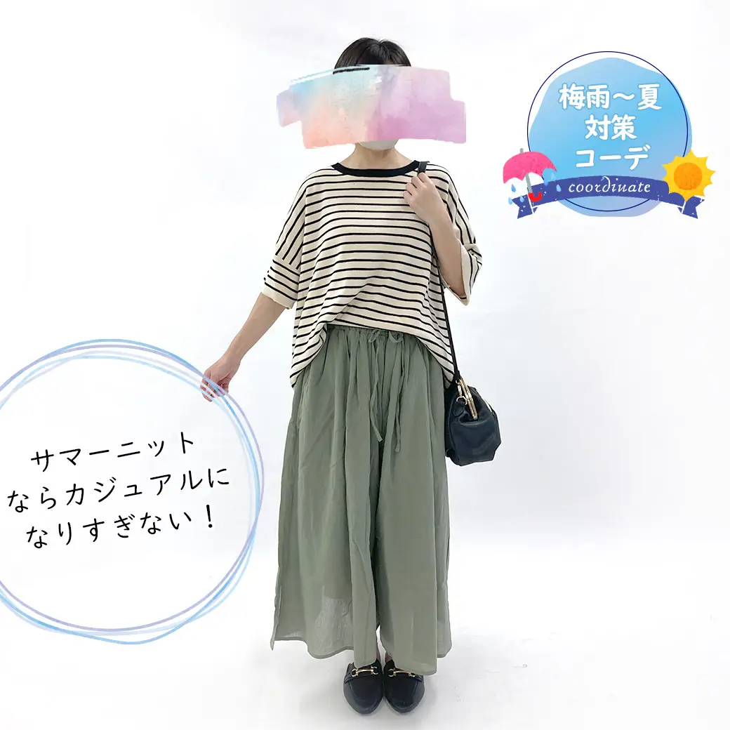 脚長効果も期待できる短め丈のブラウスを合わせ、スッキリとした印象に。まだ暑い昼間のお出かけにピッタリな生地感で季節の変わり目に取り入れやすいアイテム♪