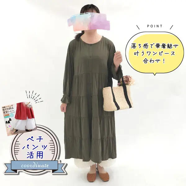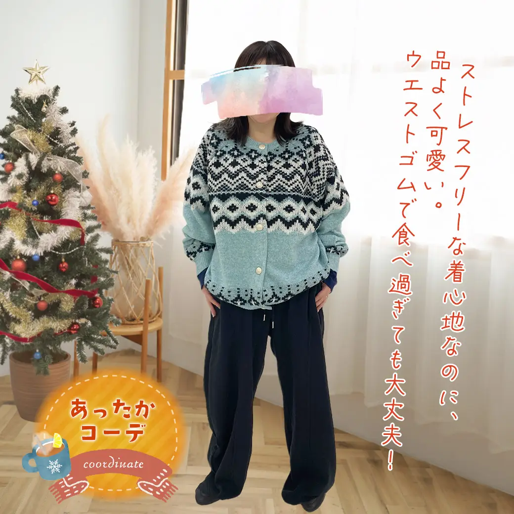 着ぶくれしないきれいめカジュアル。 ストレスフリーな着心地なのに、品よく可愛い。ウエストゴムでクリスマスパーティーで食べ過ぎても大丈夫!