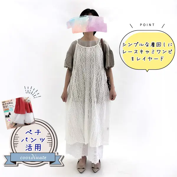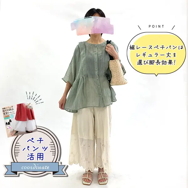 ストレッチの効いたパンツは、アウトドアに最適!気になる部分はレースで隠し、夕方寒さが増した時にはGジャンをもっていくと、安心して遊べますね♪