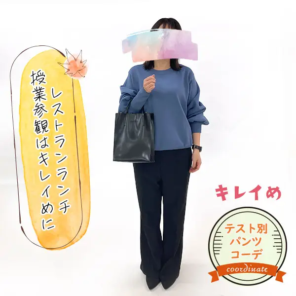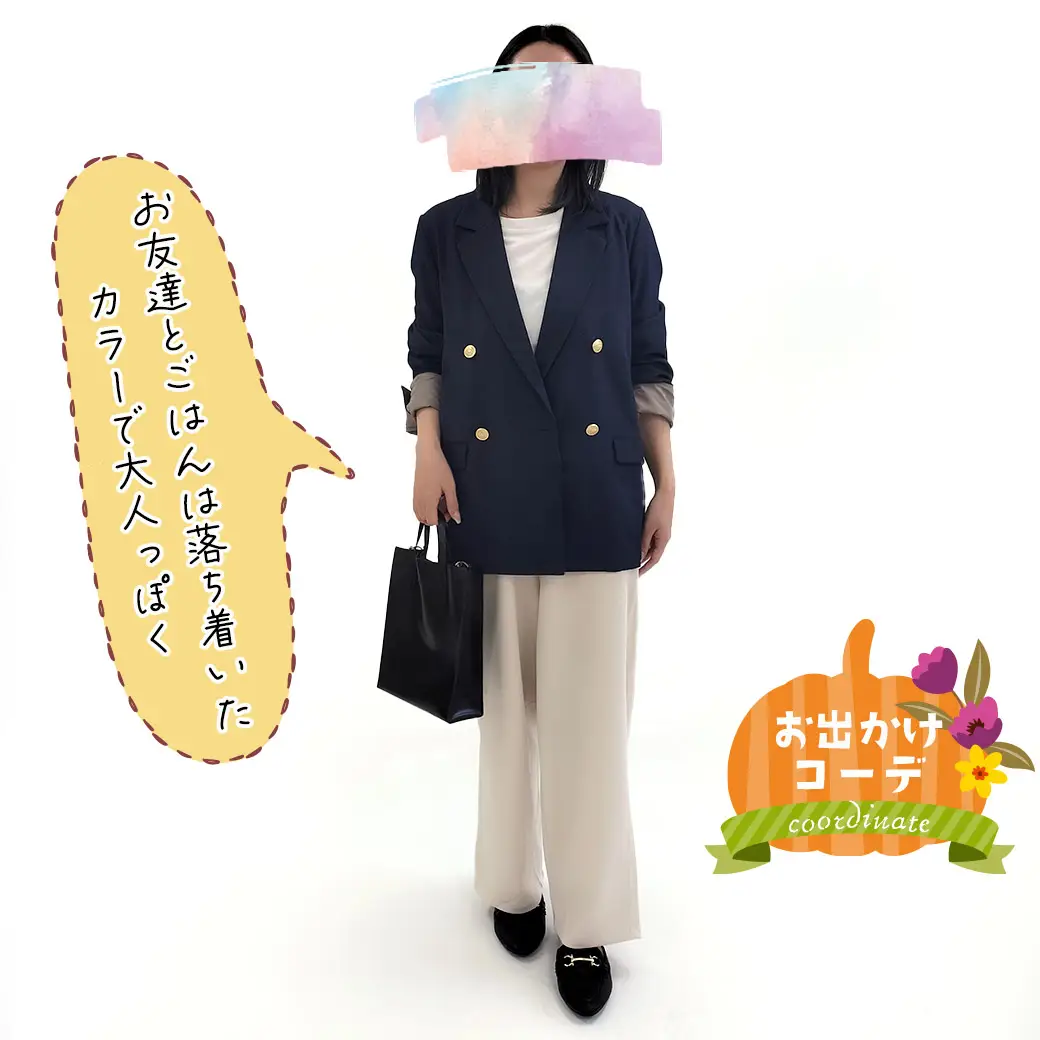 オシャレなレストランランチ。授業参観など。カジュアル過ぎてはお出かけしにくいシーンにピッタリなコーデ。