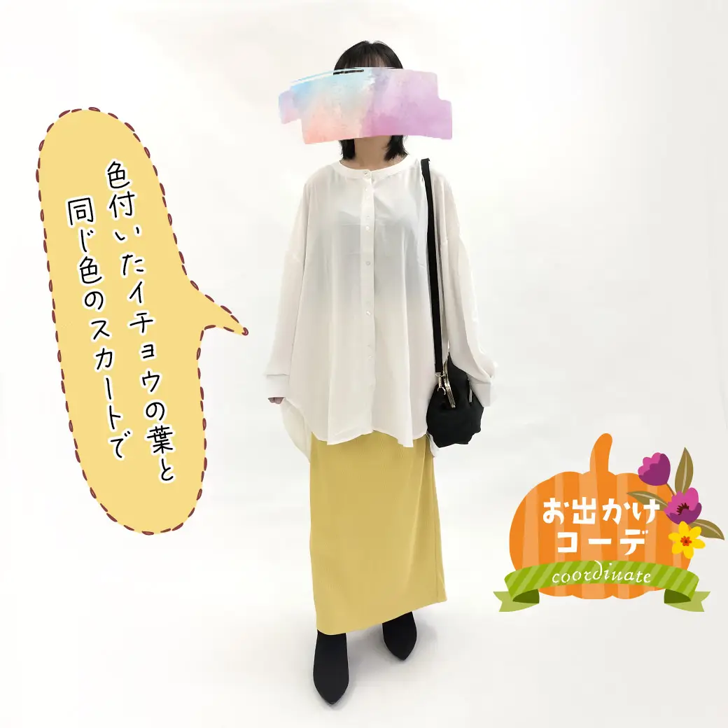 秋の入り口にちょうどいい、長袖のシャツのコーデで、イチョウ狩りへ。色付いたイチョウの葉と同じ色のスカートで、映える写真をたくさん取って帰ろうと思います♪