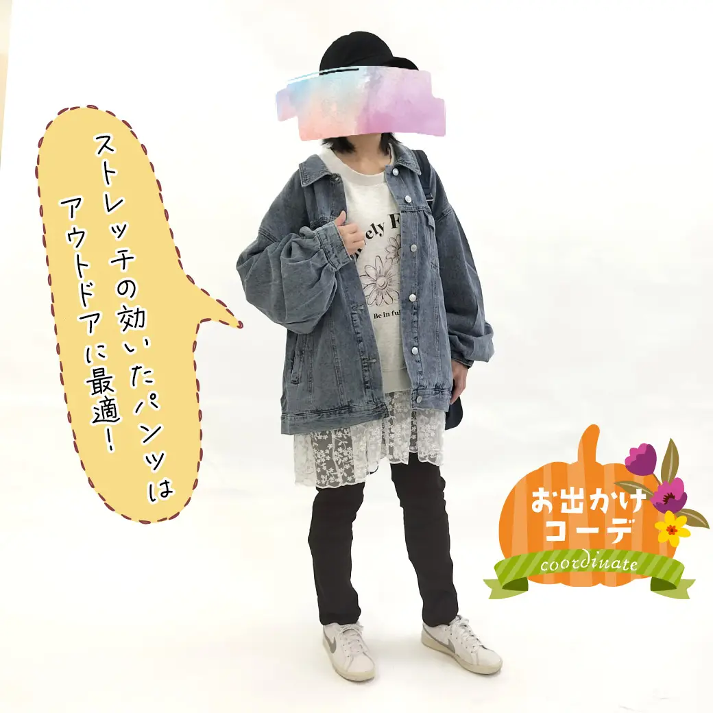 ちょっと近場にお出かけラフコーデ。肌寒くなったので、トップスはあったか裏起毛。暖かいけど着膨れずラフだけどオシャレなスタイルに。