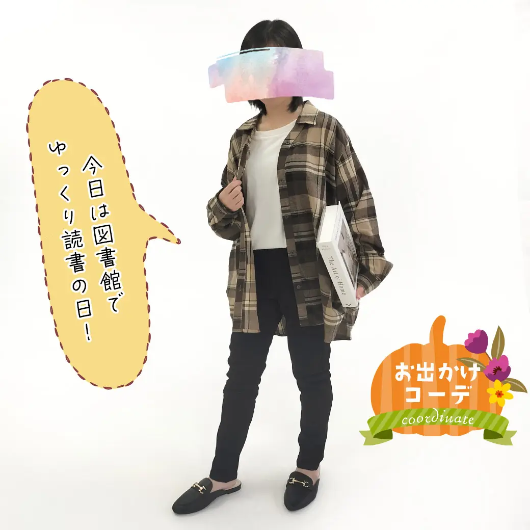 お尻まですっぽりのチェックシャツは楽ちん!リラックスして一日読書の日。