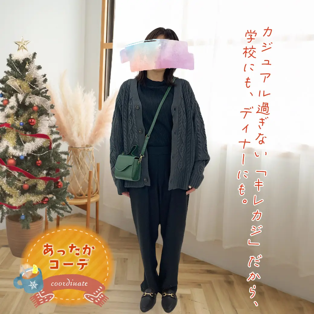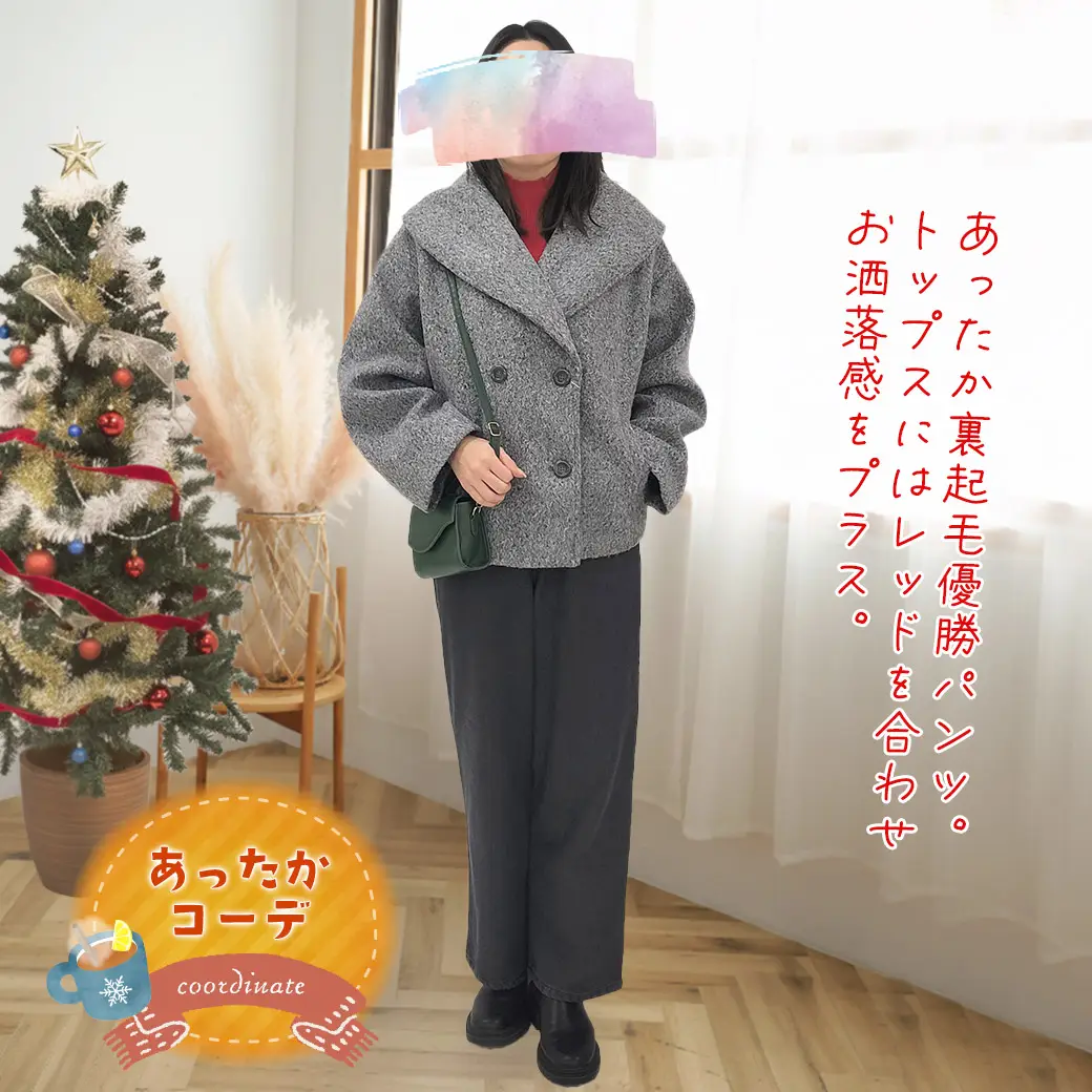 大人気優勝パンツの裏起毛を!暖かくて柔らかい素材感♪トップスにはレッドを合わせお洒落感をプラス。アウターはセーラーカラーで後ろ姿もしっかり可愛い。クリスマスにもピッタリなコーデです♪
