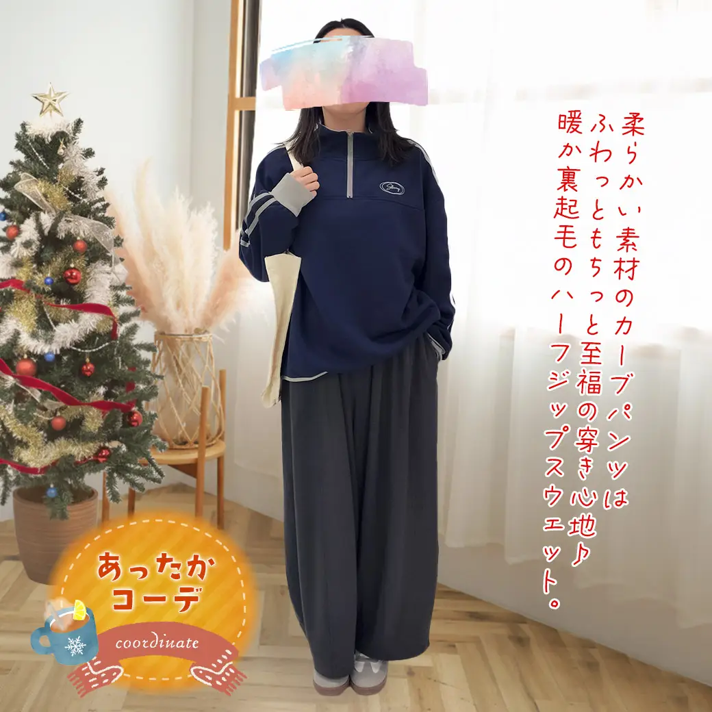 お友達とのランチにもカジュアル過ぎず可愛いさのあるコーデ。裏起毛で寒さ対策もバッチリ。