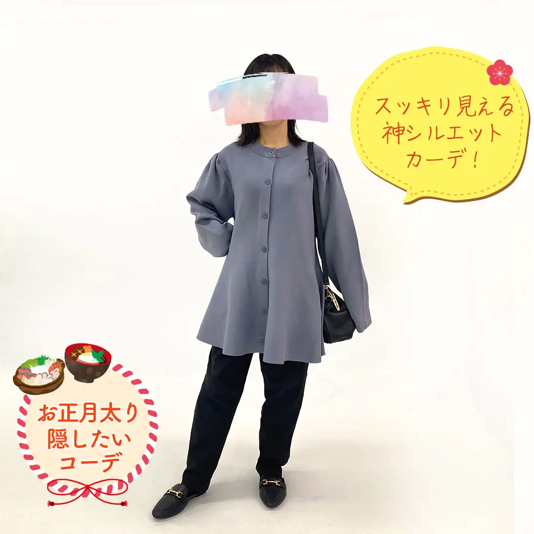 帰省中、ありがたいことに、上げ膳据え膳であまえていたら、お腹周りを隠したい体型に💦ゆったりな着心地なのに、スッキリ見える神シルエットのカーディガンで、品よく体型カバー!