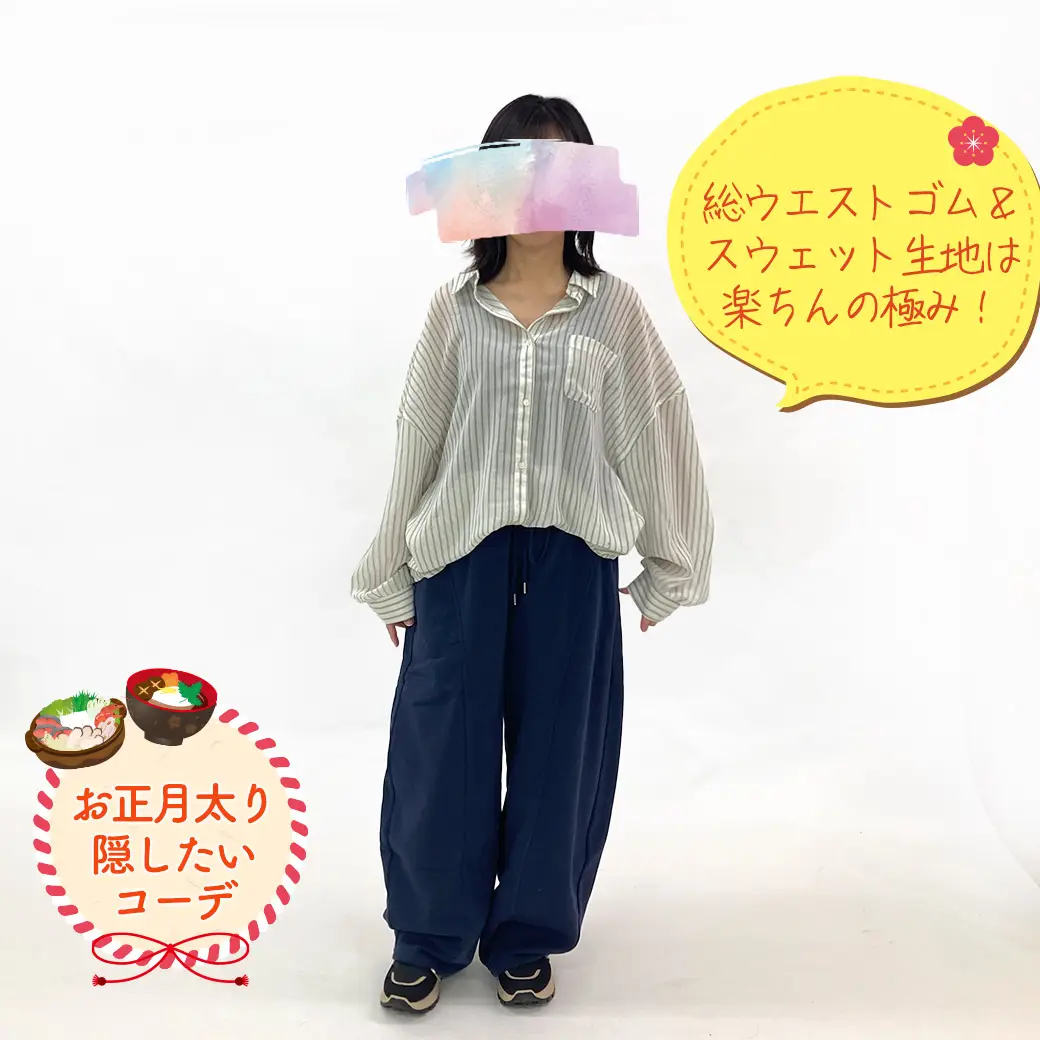ワイドパンツで太もも・お尻もすっきりカバー。