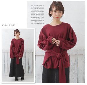 TCポンチ ベルテッド 長袖 プルオーバー ウエストの脇にベルトとベルトループが付いていて ウエストマークして着られる。 ★サイズ:LL~4L ¥2,990(税込)