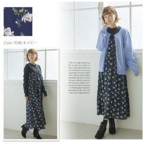 ロング丈 レイヤード風 長袖 ワンピース