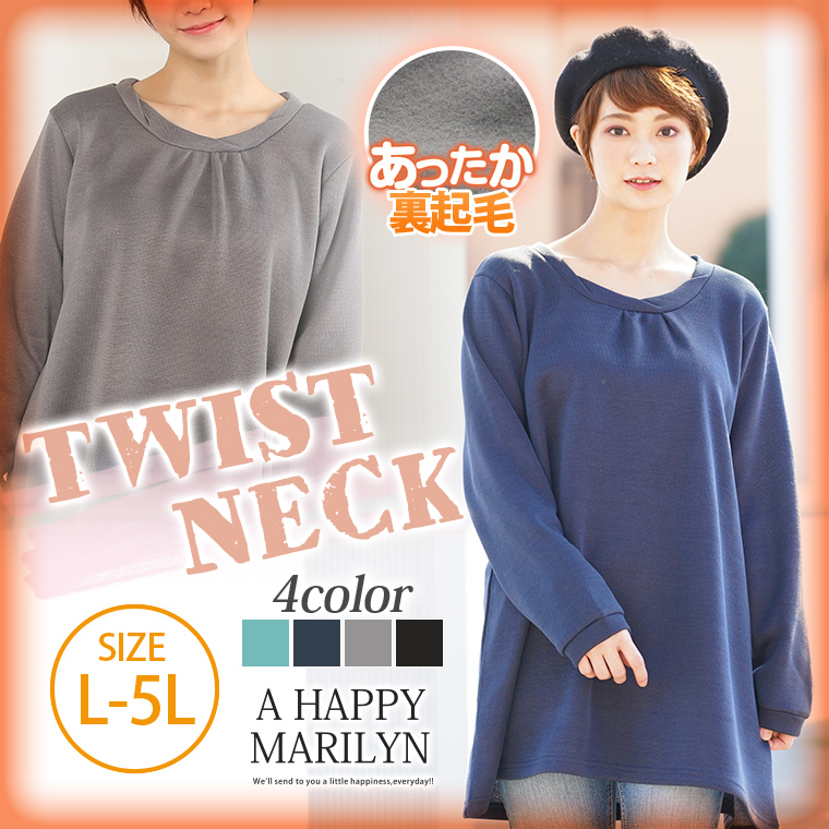 ツイストネック 裏起毛 長袖 プルオーバー